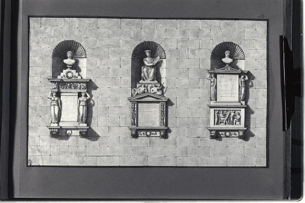 - NOTIZIE STORICO CRITICHE Il disegno fa parte di un album Vallardi del 1840, di dimensioni mm 352 x 460, sulla cui copertina in pelle marrone chiaro è incisa l'iscrizione in lettere capitali dorate "Paolo Landriani / milanese / e suoi contemporanei / nell'arte prospettica valentissimi / questi loro disegni / Giuseppe Vallardi / raccolse / per tramandare / co' passati maestri a' futuri / la stabile rinomanza / della scuola lombarda / l'anno MDCCCXL". Ogni singolo disegno è incollato a un foglio dell'album di carta di colore grigio-azzurro.\nL'opera mostra analogie con altre, attribuite a Landriani e di simile soggetto, conservate negli album Vallardi.