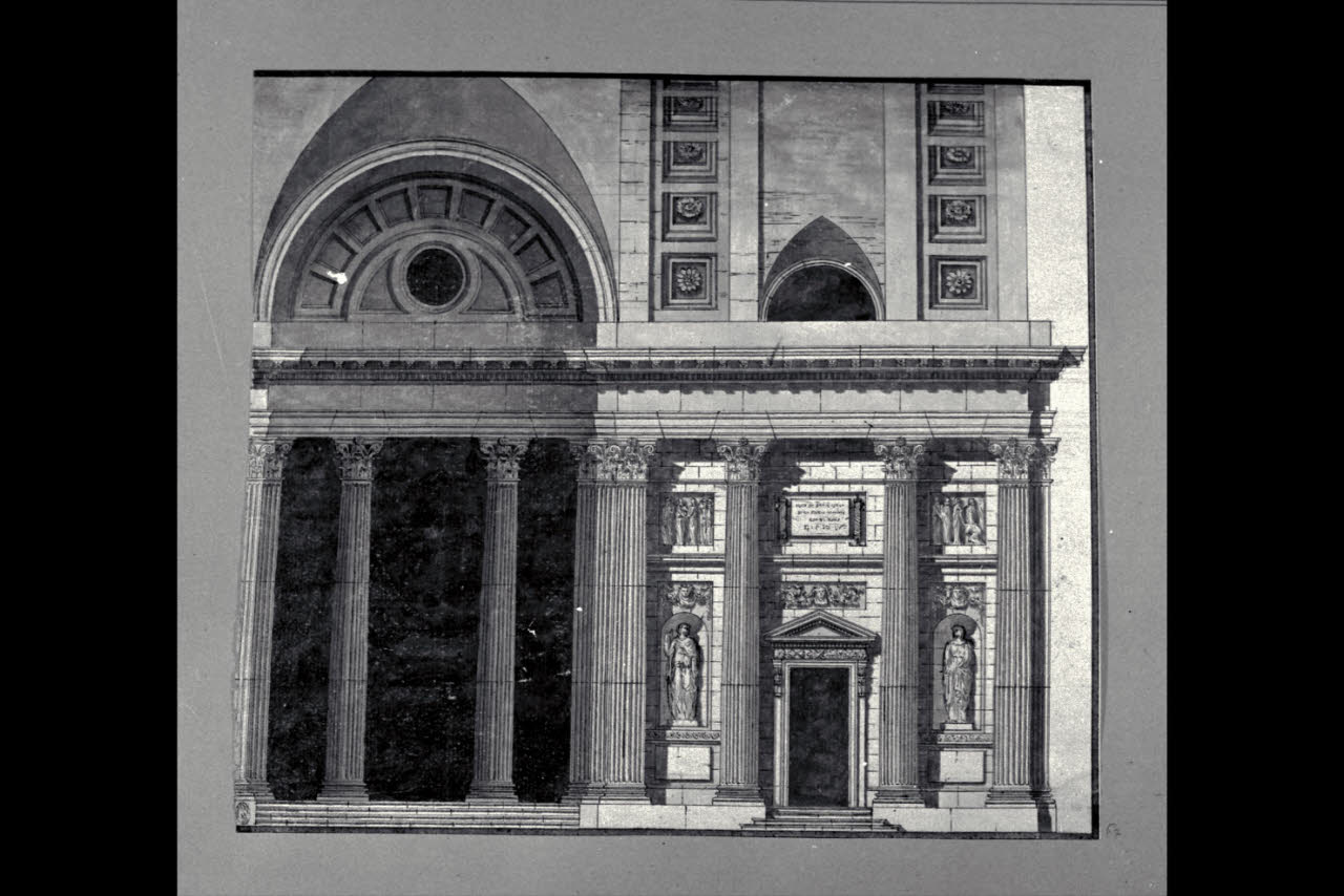 Porzione di edificio con sculture e ornati