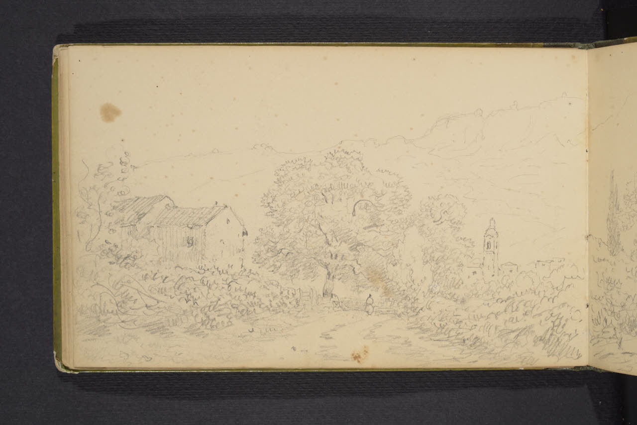 Album n. 5 - Territorio veronese e Lago di Garda. Paesaggio con casolari e campanile