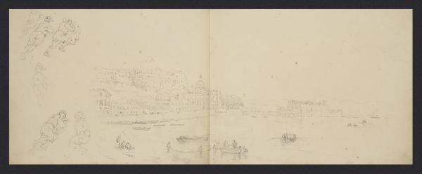 Album n. 9 - Livorno, Civitavecchia, Roma, Napoli (macchiette). Ampia veduta del porto di Livorno e fortezza