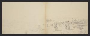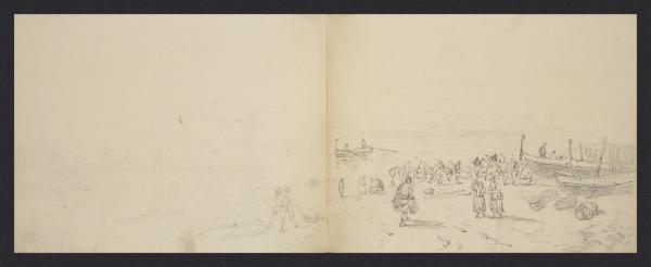 Album n. 9 - Livorno, Civitavecchia, Roma, Napoli (macchiette). Pescatori e barche sulla spiaggia