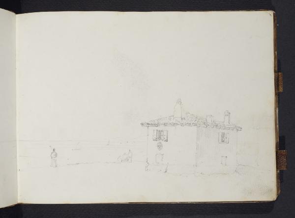 Album n. 10 - Trieste, Lago Maggiore, Val d'Imagna e luoghi del milanese con brughiera e Monte Rosa. Casa rustica su un molo