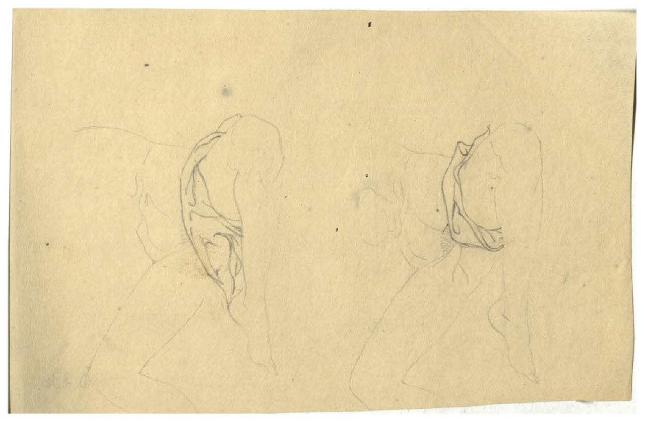 Doppio studio per posa di gambe femminili. Disegno preparatorio per l'acquaforte Il Pianeta Venere