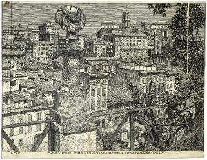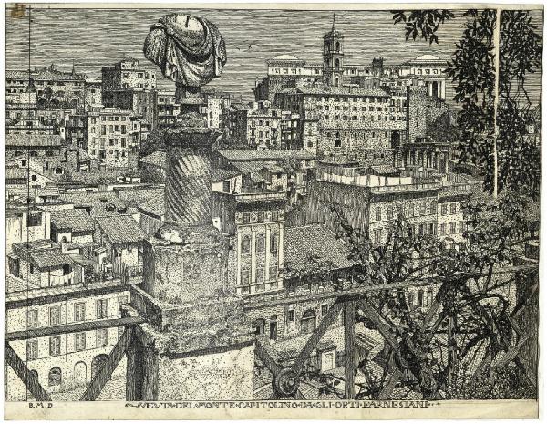 Roma. Veduta del Monte Capitolino dagli Orti Farnesiani (disegno preparatorio per l'acquaforte)