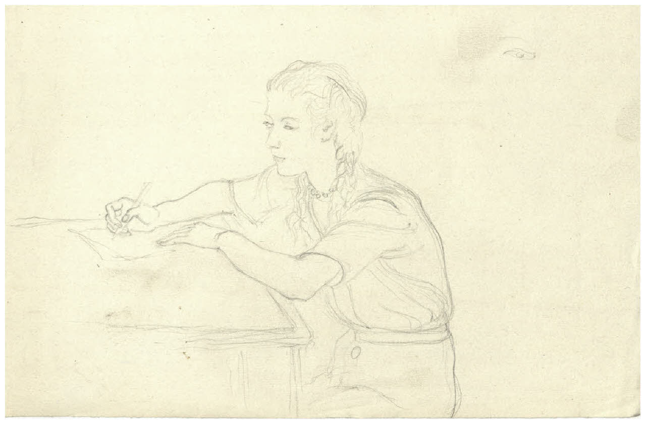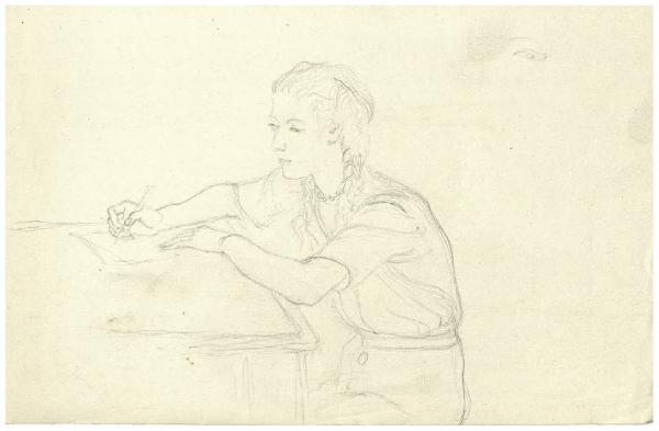 Ritratto di ragazza seduta mentre scrive