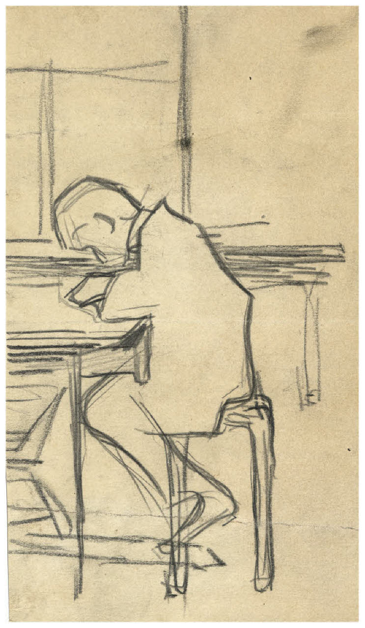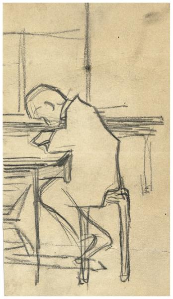 Figura maschile seduta a un tavolo
