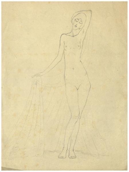 Nudo femminile in piedi sotto un padiglione (disegno preparatorio per un ex libris per Vittorio Pica)