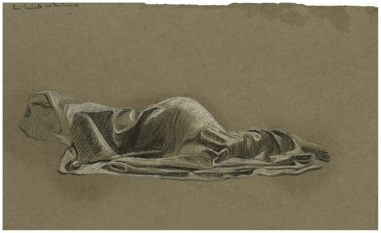 Figura femminile distesa. Disegno preparatorio per il segno zodiacale della Vergine nell'acquaforte Il Pianeta Mercurio