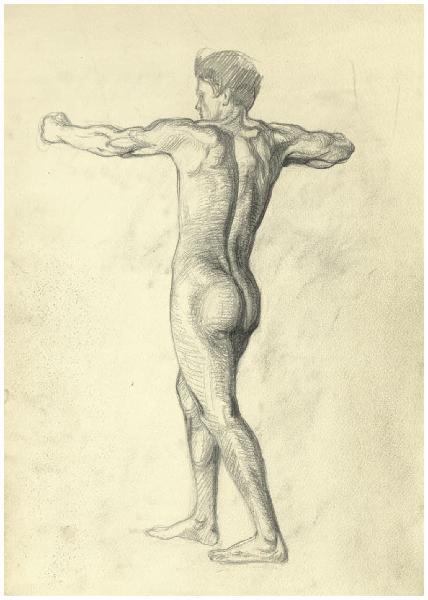 Nudo maschile nell'atto di scagliare una freccia