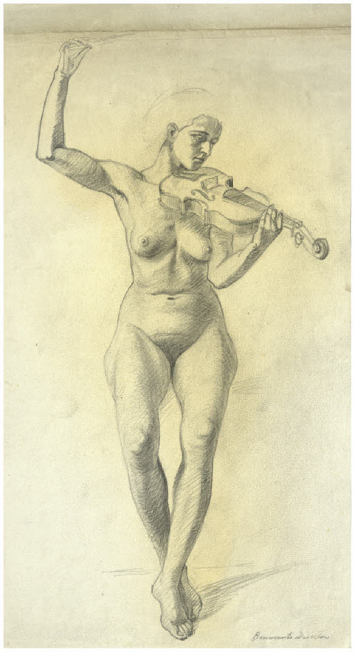 Nudo femminile con violino. Disegno preparatorio per La Cerba