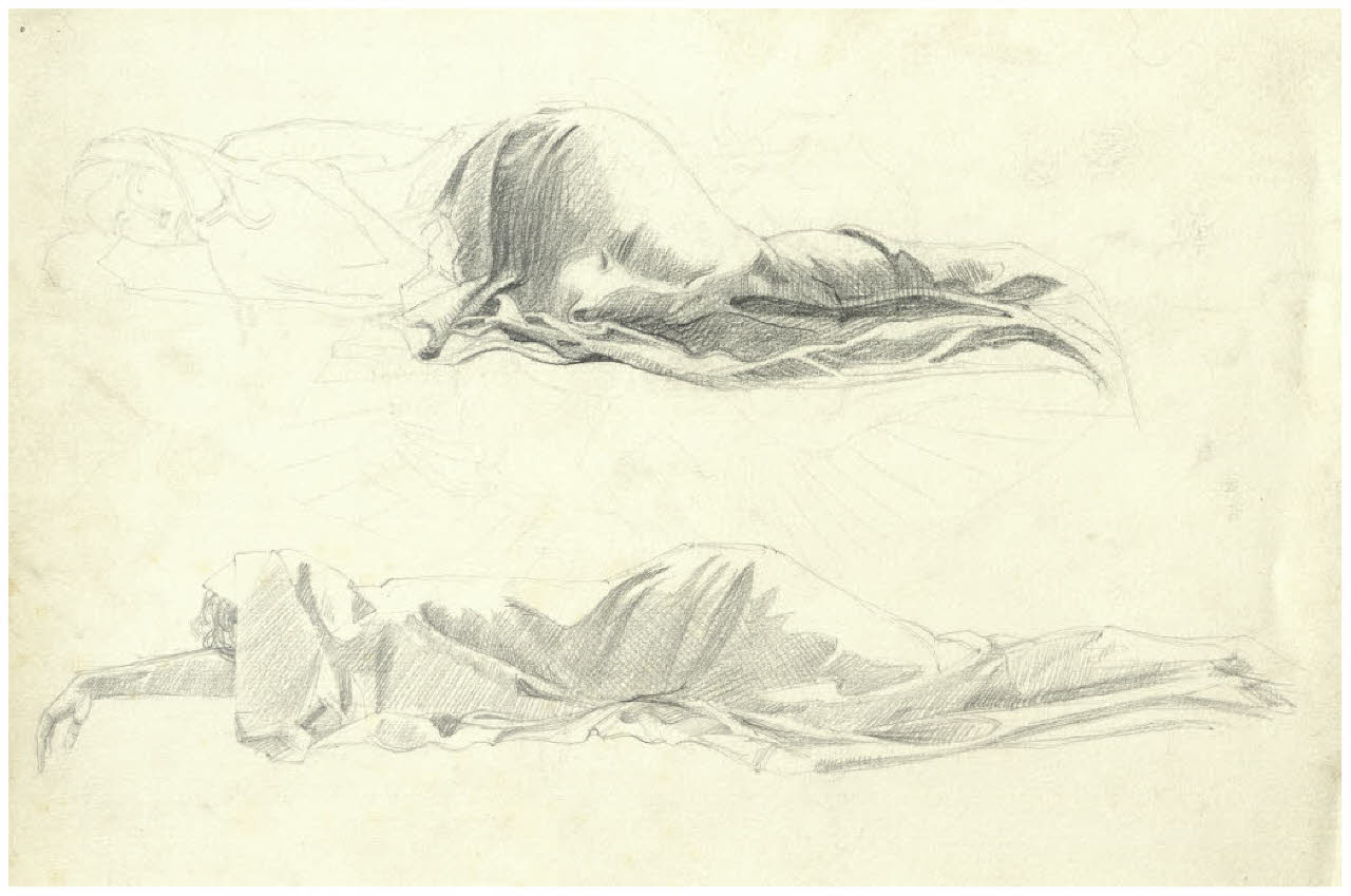 Figura femminile distesa. Disegno preparatorio per il segno zodiacale della Vergine nell'acquaforte Il Pianeta Mercurio