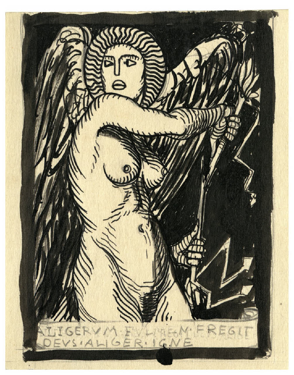 Figura femminile alata con folgore (Allegoria del potere dell'Amore) - Aligerum fulmen fregit deus aliger igne