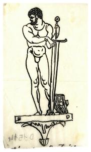 Figura maschile con grande spada e ceppo. Studio per illustrazione