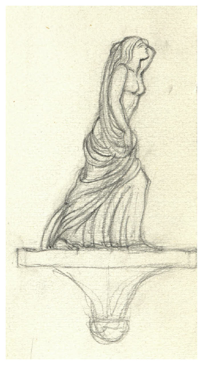 Figura femminile abbigliata all'antica che avanza verso destra. Studio per illustrazione