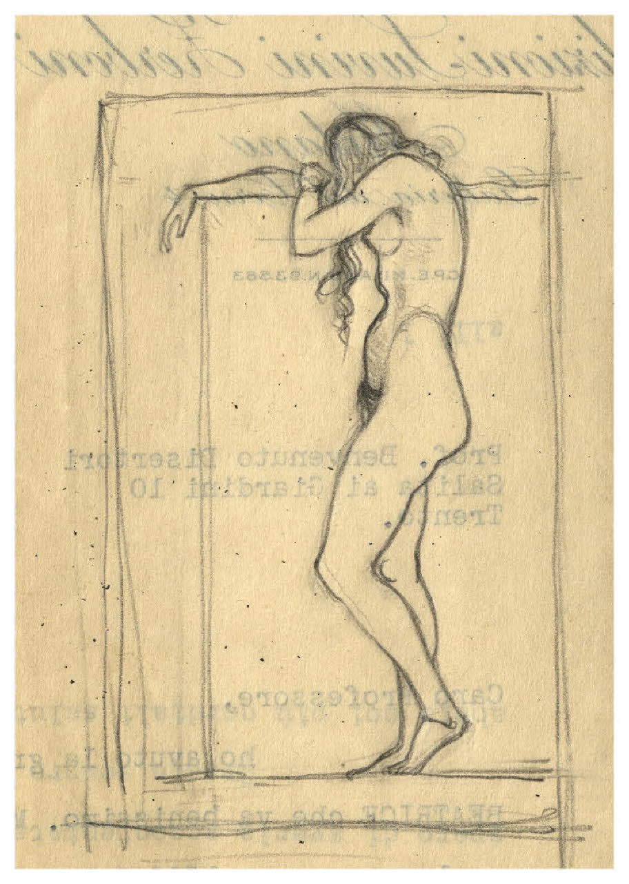 Nudo femminile di profilo con la testa piegata in avanti (disegno preparatorio per l'ex libris per Benvenuto Disertori, Tu non se' morta...)