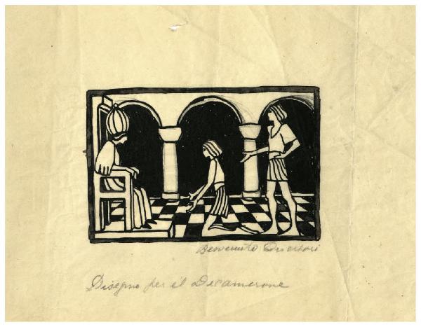 Disegno preparatorio per illustrazione silografica del Decamerone, Giornata IX-Emilia: novella nona