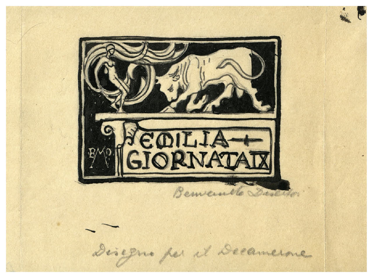 Emilia. Giornata IX (disegno preparatorio per il frontespizio dell'edizione Formiggini del Decamerone)