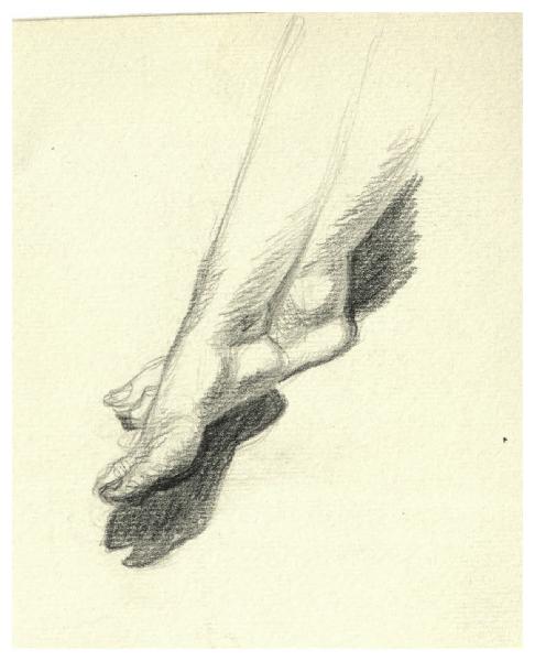 - NOTIZIE STORICO CRITICHE Nel 1950 Benvenuto Disertori ha presentato alla Biennale di Venezia un disegno dal titolo La cerba, datato 1944, raffigurante una scena dal contenuto enigmatico ambientata tra le rovine di una dimora, ispirata ad un verso dell'omonimo poema di Cecco d'Ascoli "La cerba en melodia se delecta, Si ch'una chacciatrice suona et chanta, et l'altra acerbamente la sajecta". Protagoniste della scena sono tre figure femminili nude: a destra una che sta per lanciare una freccia ad una cerva, a sinistra una seduta mentre suona il violino, infine l'ultima è distesa in primo piano. Il disegno fa oggi parte del Fondo Disertori al Gabinetto dei Disegni del Castello Sforzesco (inv. FD D 478; per un approfondimento cfr. G. Ricagni, La Cerba: l'enigma di un'allegoria, in "Grafica d'arte", 2003, pp. 30-32). Nella stessa collezione si conservano diversi studi per la composizione nel suo insieme oppure studi di figura. In stretta relazione con il soggetto di questo disegno sono due incisioni, entrambe rarissime e apparentemente non terminate (inv. FD S 10, Bellini-Alberti 53; FD S 17, Bellini-Alberti 57). Il legame tra tutte le opere riferibili in qualche modo al progetto La cerba non risulta, allo stato degli studi, adeguatamente documentato per le oggettive difficoltà a visionare, quando si trovavano nella collezione di Andrea Disertori, l'intera sequenza dei materiali. Non è da escludere che tutto fosse finalizzato alla realizzazione di un'incisione, di cui le due piccole lastre avrebbero potuto costituire un primo tentativo di traduzione sul rame. Per questa ragione, a questo primo livello di catalogazione, si propone per tutto il nucleo La cerba una datazione verso il 1944.