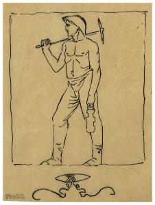 Operaio con piccone. Disegno preparatorio per la copertina di Ada Negri, Poesie, Milano, Mondadori, 1948