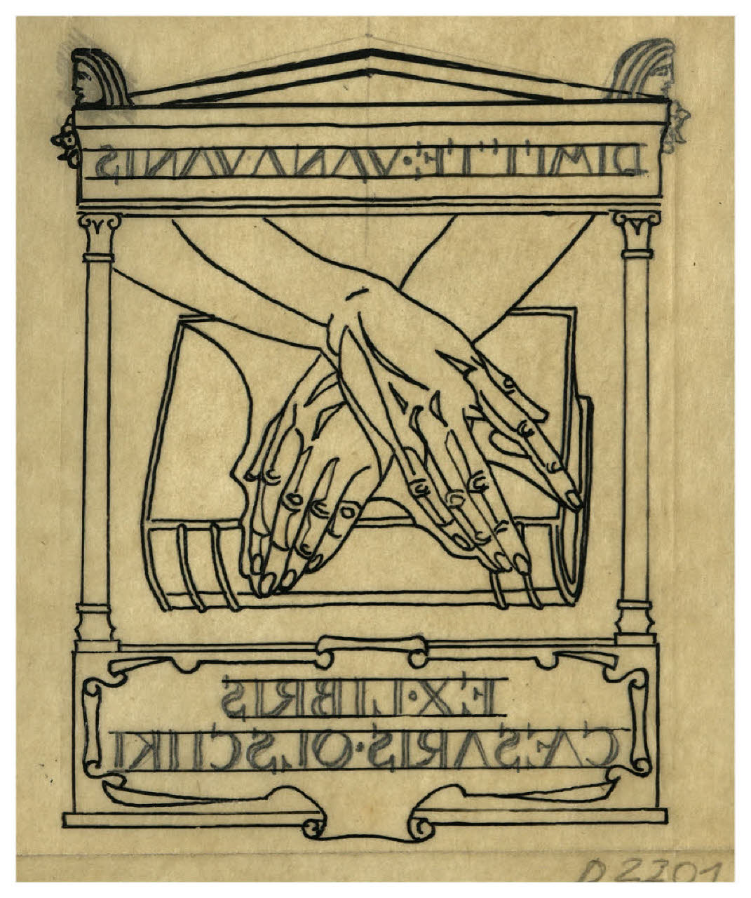 Mani e libro - Dimitte vana vanis (disegno preparatorio per l'ex libris per Cesare Olschki)