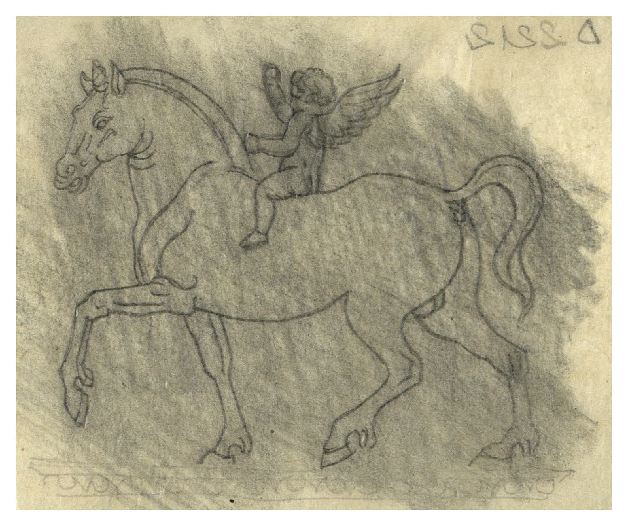 Cupido a cavallo di un unicorno (disegno preparatorio per un ex libris)