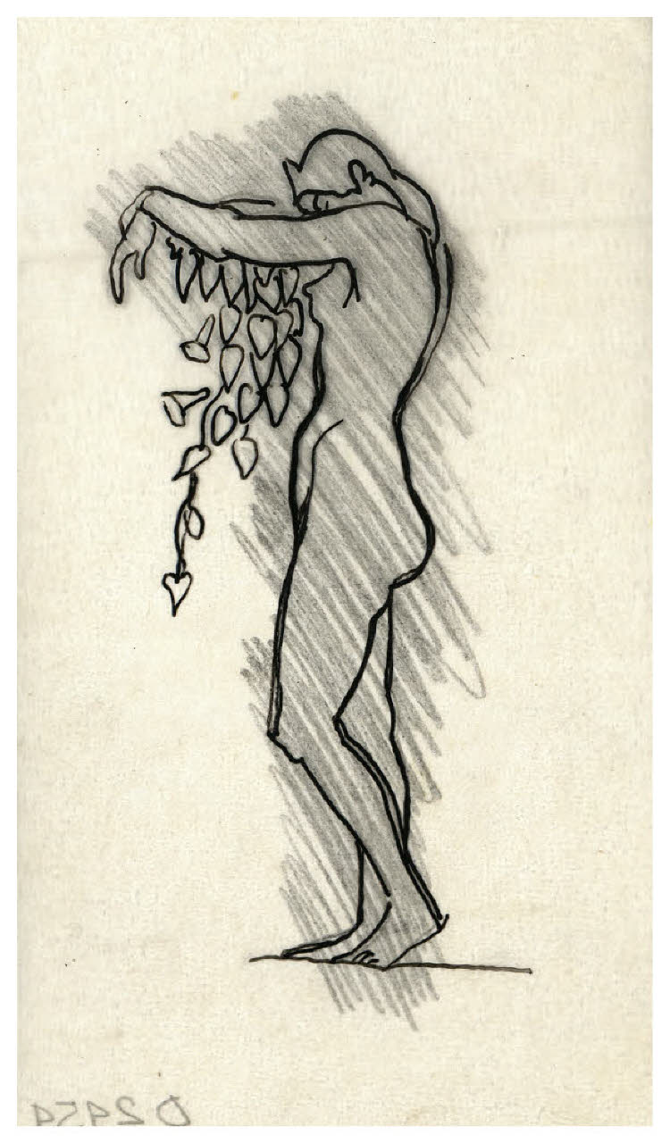 Nudo femminile di profilo con la testa piegata in avanti (disegno preparatorio per l'ex libris per Benvenuto Disertori, Tu non se' morta...)