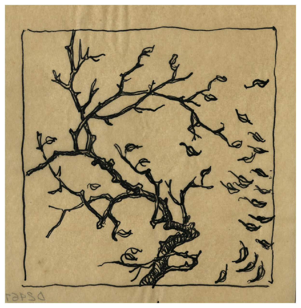 Albero che perde le foglie (disegno preparatorio per la copertina di Giuseppe Giacosa, Teatro, Milano, Mondadori, 1948)