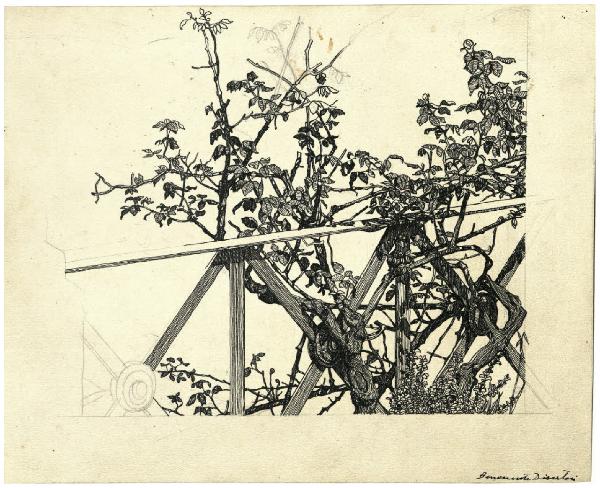 Ringhiera e roseto (disegno preparatorio per l'acquaforte Roma. Veduta del Monte Capitolino dagli Orti Farnesiani)