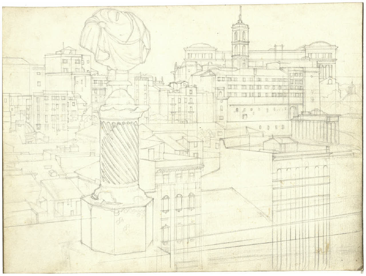 Roma. Veduta del Monte Capitolino dagli Orti Farnesiani (disegno preparatorio l'acquaforte)