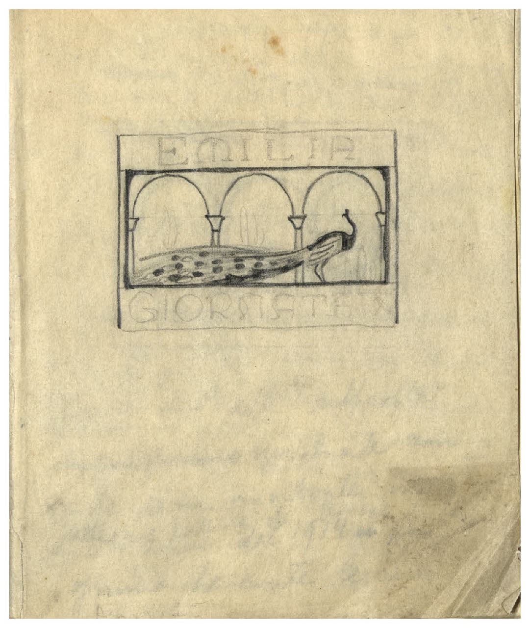 - NOTIZIE STORICO CRITICHE L'album nel quale è contenuto questo disegno è riconducibile, con poche eccezioni, al progetto per l'illustrazione, in xilografia, della Giornata IX del Decamerone di Boccaccio per l'edizione Formiggini del 1916 (collana "I Classici del Ridere"). La sua datazione è riferibile pertanto al 1913-14, quando Disertori avrebbe iniziato a studiare per queste incisioni. Alle carte 2 recto e 2 verso è vergata una lunga annotazione autobiografica dell'artista (forse successiva ai disegni), che ricorda le difficoltà economiche conosciute "in questi anni dal 1914 in poi".\nLa soluzione prospettata per il frontespizio del Decamerone nel disegno qui catalogato venne poi abbandonato a favore di una diversa soluzione.