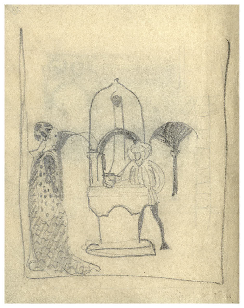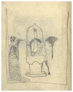 Disegno preparatorio per illustrazione silografica del Decamerone, Giornata IX-Emilia: novella quinta
