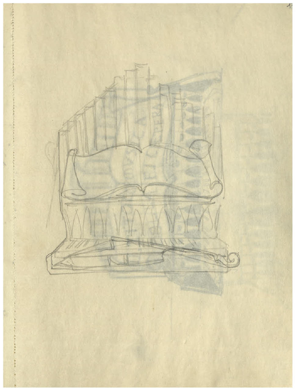 - NOTIZIE STORICO CRITICHE L'album del quale fa parte il disegno qui schedato può datarsi alla prima metà degli anni Dieci, dopo il rientro in Italia nel 1911, quando Disertori intraprende una serie di viaggi e conosce le città medioevali del centro Italia. Vi si riconoscono infatti vedute di San Gimignano e Perugia. Sono inoltre presenti disegni destinati a progetti editoriali come il Decameron per le edizioni Formiggini (edito nel 1916, ma in preparazione dal 1913-14), la Leggenda di San Basilio di Ildebrando Pizzetti (1912), e Frammenti vissuti di Torello Fanciullacci per la Tipografia emiliana a Venezia (1913).