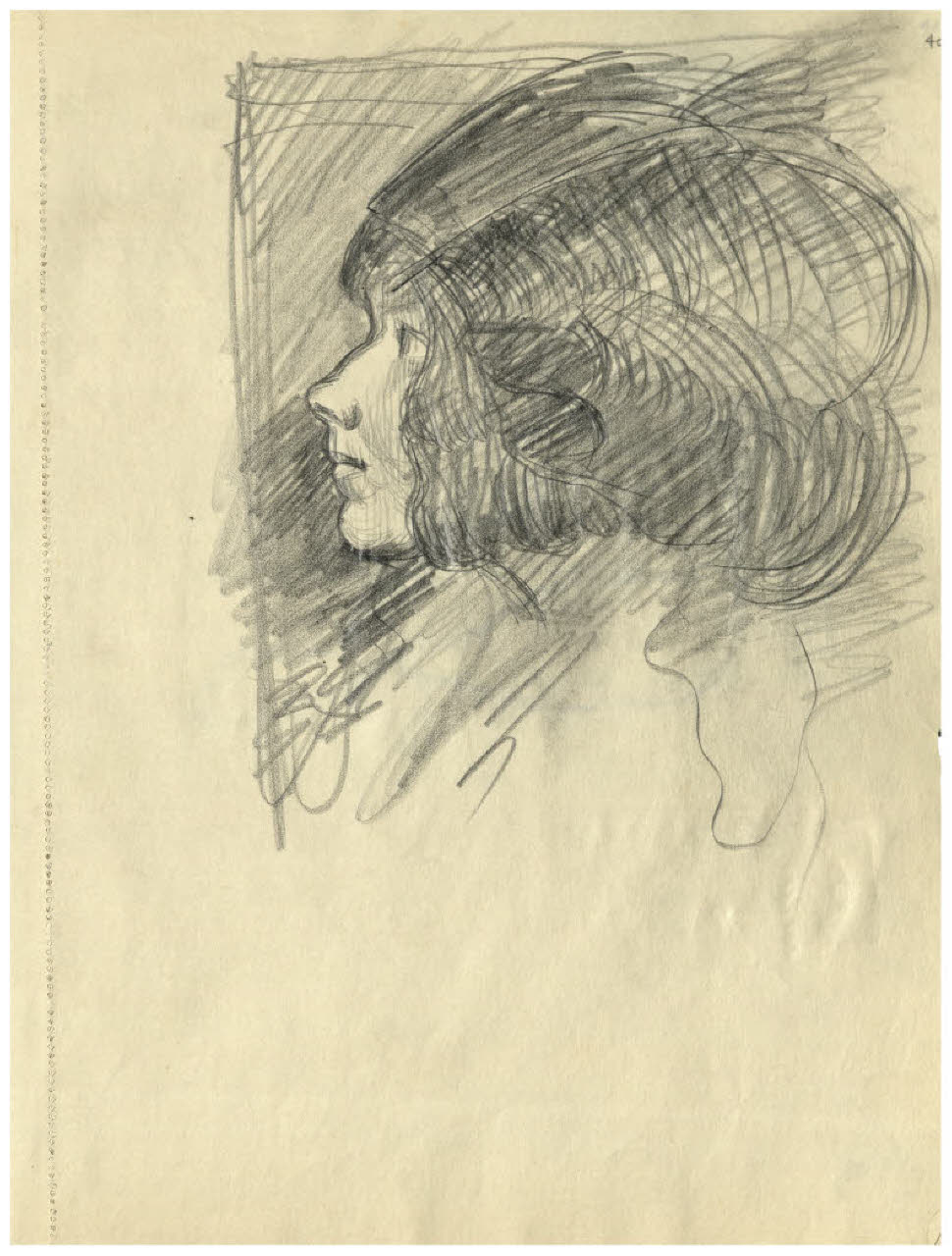 - NOTIZIE STORICO CRITICHE L'album del quale fa parte il disegno qui schedato può datarsi alla prima metà degli anni Dieci, dopo il rientro in Italia nel 1911, quando Disertori intraprende una serie di viaggi e conosce le città medioevali del centro Italia. Vi si riconoscono infatti vedute di San Gimignano e Perugia. Sono inoltre presenti disegni destinati a progetti editoriali come il Decameron per le edizioni Formiggini (edito nel 1916, ma in preparazione dal 1913-14), la Leggenda di San Basilio di Ildebrando Pizzetti (1912), e Frammenti vissuti di Torello Fanciullacci per la Tipografia emiliana a Venezia (1913).