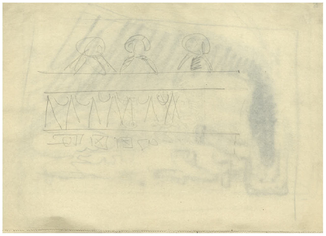 - NOTIZIE STORICO CRITICHE L'album del quale fa parte il disegno qui schedato può datarsi alla prima metà degli anni Dieci, dopo il rientro in Italia nel 1911, quando Disertori intraprende una serie di viaggi e conosce le città medioevali del centro Italia. Vi si riconoscono infatti vedute di San Gimignano e Perugia. Sono inoltre presenti disegni destinati a progetti editoriali come il Decameron per le edizioni Formiggini (edito nel 1916, ma in preparazione dal 1913-14), la Leggenda di San Basilio di Ildebrando Pizzetti (1912), e Frammenti vissuti di Torello Fanciullacci per la Tipografia emiliana a Venezia (1913).