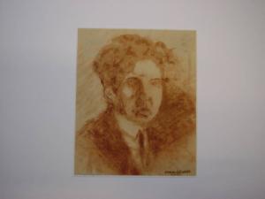 E' ritratta una figura maschile a mezzo busto e di tre quarti. Il tratteggio mosso e sfumato, con l'ausilio di large acquerellature in color ocra, definisce con forti contrasti chiaroscurali i lineamenti del volto e la capigliatura