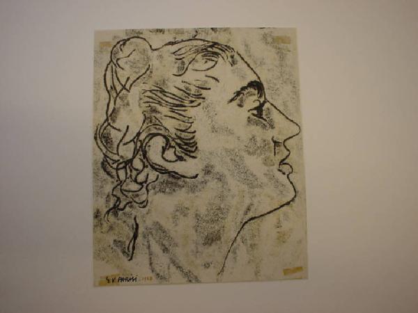 Un profilo di donna a testa alta è raffigurato con pochi tratti decisi. Ad essere libero è soprattutto il trattamento della chioma.