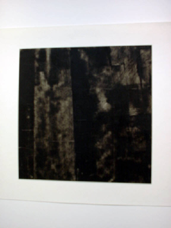 Il colore, molto diluito, è steso a spatolate irregolari verticali . Il resto dello sfondo è campito di nero intenso