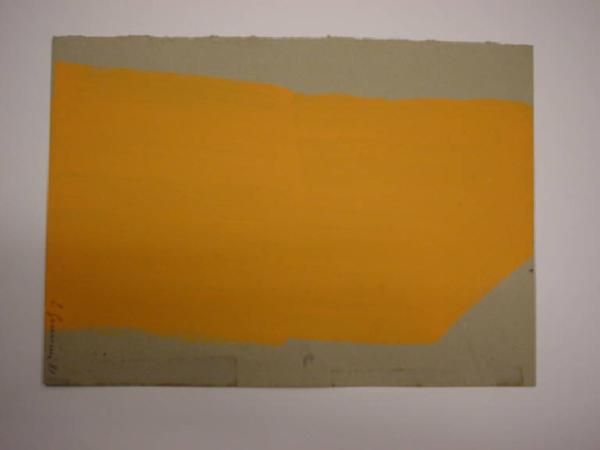 Fascia sviluppata in verticale di colore arancione steso a pennellate frettolose