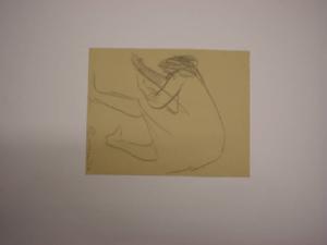 Donna ripresa di spalle con le ginocchia leggermnete piegate - il disegno è poco più di uno schizzo