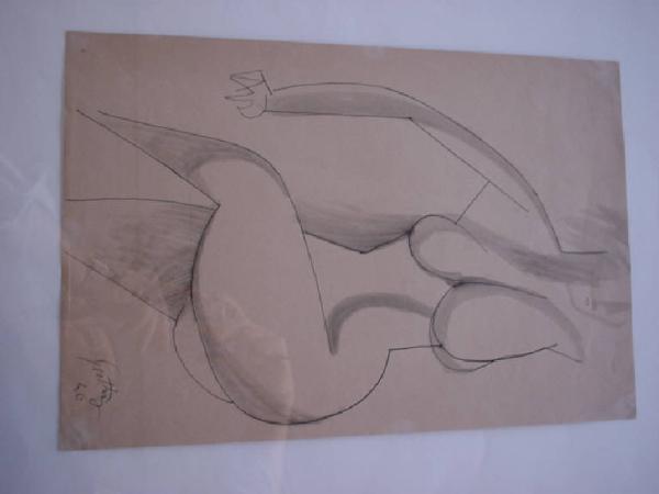 Nudo femminile molto stilizzato. L'autore sceglie di tagliare il corpo all'altezza della testa e delle ginocchia, per dare la massima evidenza alla poderosità delle forme
