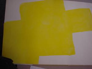 Ampie zonature di colore steso a tempera formano una fascia monocromatica gialla