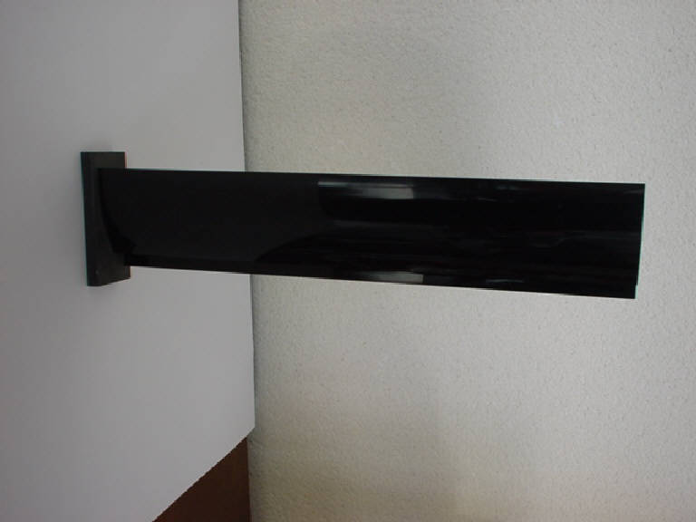 Due lastre di polimetacrilato nero leggermente concave sono giustapposte in modo dissimmmetrico tramite una sottile lastra rettangolare posta perpendicolarmente a esse e a loro congiunta.