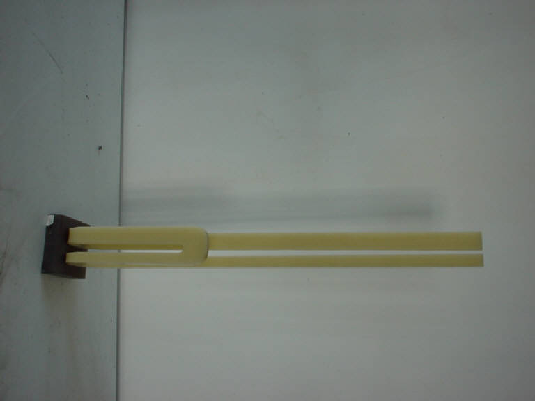 Su di una base in polimetacrilato fumè un doppio elemento collegato da una sola estremità compie una doppia parabola verticale