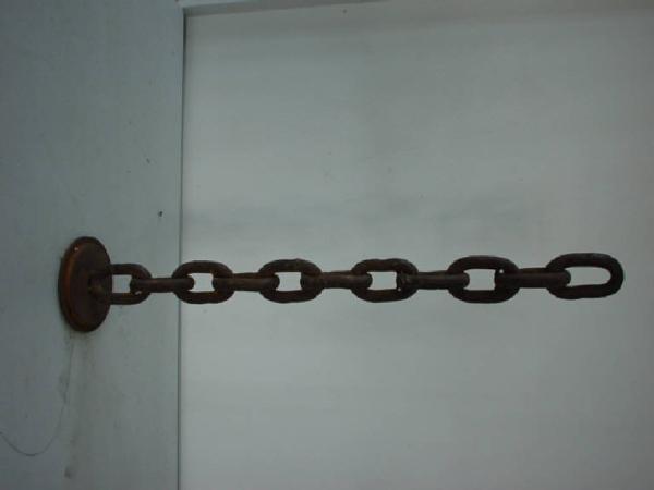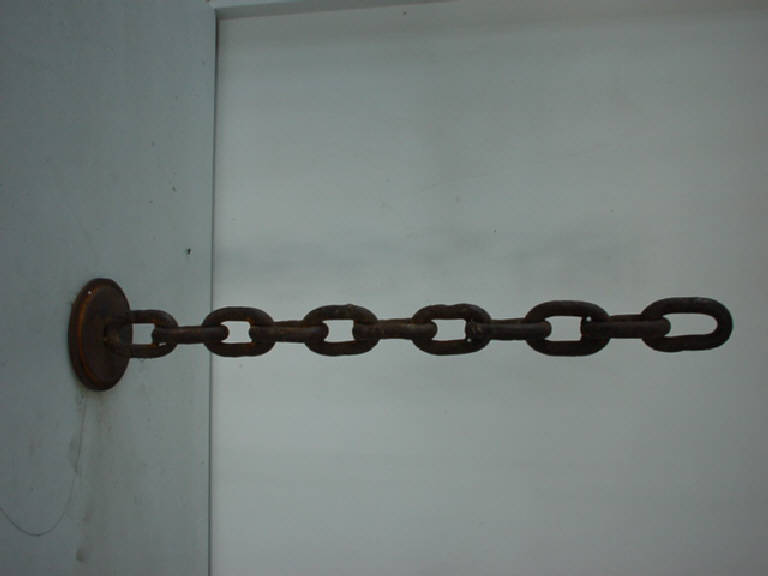 Una catena saldata, e dunque perfettamente sviluppata in altezza, poggia su un basamento circolare.