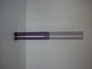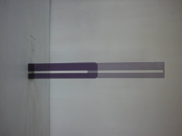 Scultura ad andamento paraboloide. Un braccio della ideale parabola è però di altezza inferiore rispetto all'altro. Il polimetacrilato è lilla trasparente