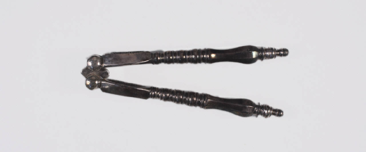 - NOTIZIE STORICO CRITICHE I due schiaccianoci sono privi di ornamentazione e si pongono in modo autonomo rispetto alle altre posate componenti il servizio, sebbene sia individuabile nelle soluzioni formali adottate per i manici un rimando al gusto per le forme variamente tornite del primo Seicento, giustificabile nel generale clima di eclettismo stilistico imperante nel tardo Ottocento