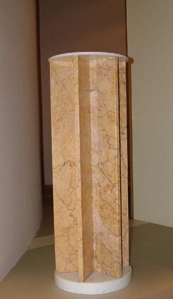 Colonna porta-oggetti con base e piano d'appoggio circolari. Fusto costituito da lastre di marmo disposte a stella.