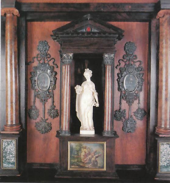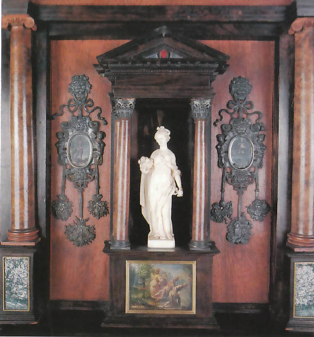 - NOTIZIE STORICO CRITICHE Secondo quanto spiega lo stesso Lucini Passalacqua nella particolareggiata descrizione del mobile data alle stampe nel 1620, le statuette d'avorio inserite nello stipo rappresentano le allegorie dei cinque sensi secondo i dettami dell'Iconografia di Cesare Ripa. Il Gusto ha nella destra un cesto di frutta e nella sinistra una pesca; gli attributi della Vista sono lo scudo con l'aquila che guarda il sole e uno specchio la cui parte superiore è oggi mancante; il falcone e la tartaruga designano il Tatto, mentre l'Udito ha la veste con orecchie di toro in rilievo, suona il liuto ed ha una cerva accucciata ai suoi piedi. La statuetta dell'Odorato è stata rubata nel 1956 e sostituita con una copia del Tatto (un'altra copia del Tatto è nei depositi di questo Museo). Sappiamo che l'Odorato aveva la veste tempestata di fiori, un vaso nella mano sinistra da cui uscivano vapori profumati, nella destra un mazzo di fiori e un bracco accucciato ai piedi.\nDell'autore di questi avori, identificato dallo stesso Lucini in "Guglielmo Bartolotti Francese", cioè Guillaume Berthelot, sono note alcune opere eseguite a Roma tra il 1610 e il 1617 prima che lo scultore si spostasse in Francia al servizio di Maria de' Medici: a Roma scolpisce due grandi Angeli in bronzo per l'altare della Cappella Paolina in Santa Maria Maggiore e, al centro della piazza omonima, la Madonna col Bambino anch'essa in bronzo; per il Palazzo di Montecavallo esegue un San Paolo in marmo sulla facciata e un Angelo reggistemma a sinistra del portale d'ingresso verso la Cappella Paolina. Un Crocifisso ligneo in Santa Maria in Vallicella gli è poi attribuito dal Baglione. Quest'ultimo dedica allo scultore una delle Vite, testimoniando così del ruolo di primo piano avuto da questi nelle vicende della scultura del primo Seicento a Roma. Non è da escludere che, in occasione di questa commissione, Berthelot abbia soggiornato a Como verso il 1613 anche se le parole del Lucini riguardo alle modalità della costruzione dello stipo ("havendo cercato ... di far fare a casa mia, ed alla mia presenza, quanto ho potuto") sembrano implicitamente ammettere che non gli era stato possibile avere il controllo diretto di tutti gli artisti e gli artigiani coinvolti. Certo è che il Lucini seguiva con grande interesse i fatti artistici dell'Urbe con particolare riguardo alla scultura. Un viaggio a Roma fatto dal Lucini nel 1621 è documentato, ma è probabile che il canonico vi si fatti artistici dell'Urbe con particolare riguardo alla scultura. Un viaggio a Roma fatto dal Lucini nel 1621 è documentato dall'epistolario di Gerolamo Borsieri ma è probabile che il canonico vi si fosse recato anche in precedenza. [Zanuso]
