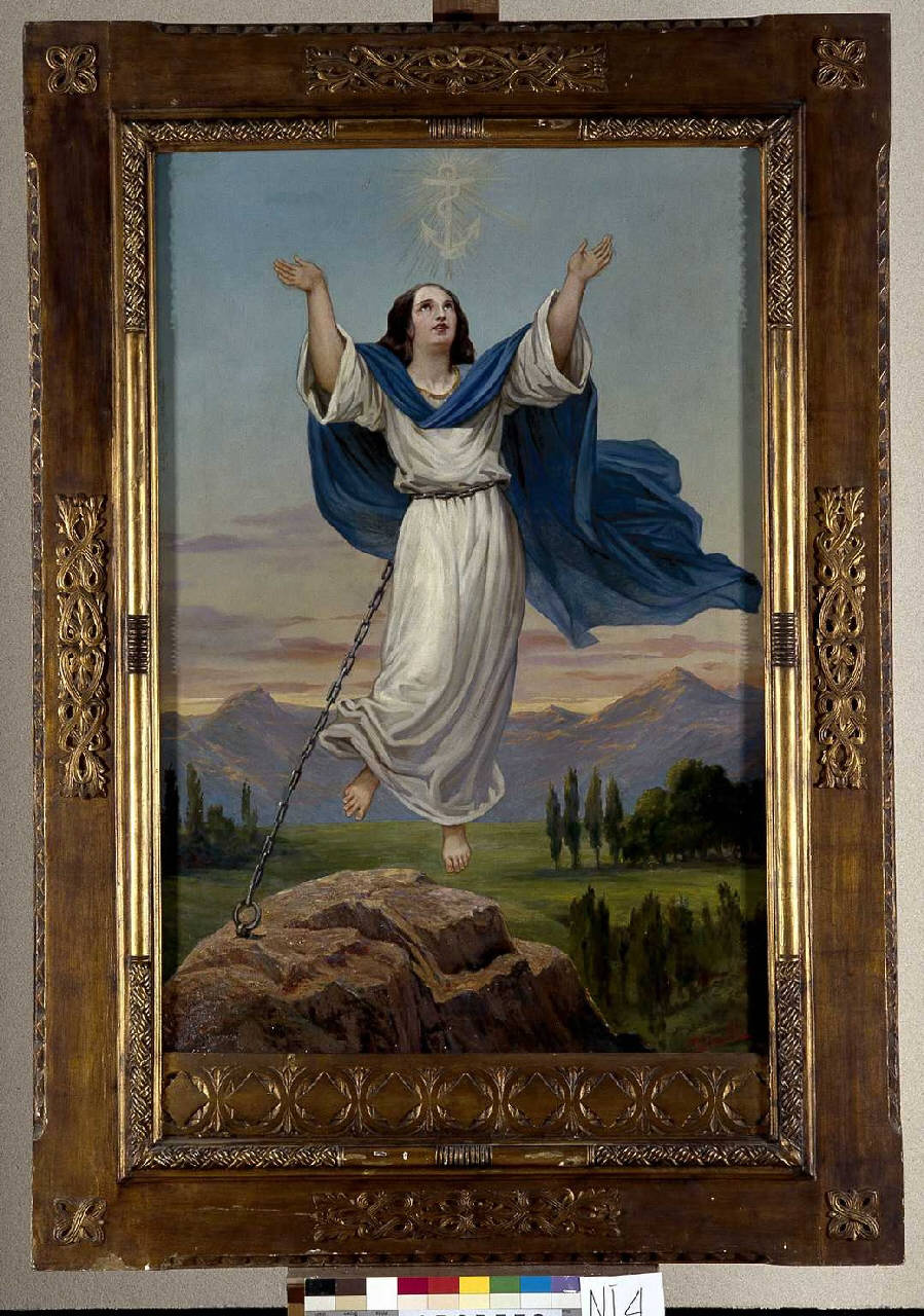 Allegoria della Speranza. figura allegorica incatenata ad una roccia