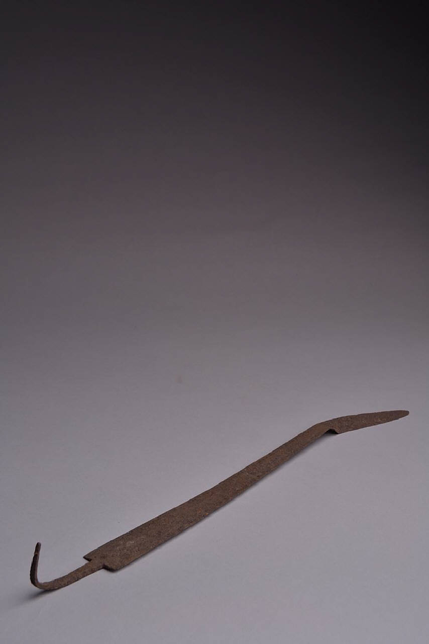Lunga lama triangolare a doppio filo, crestata per tutta la lunghezza. Breve codolo a fine spuntone di sezione rettangolare.